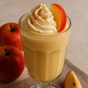 Gib nun den geriebenen Apfel hinzu und rühre ihn unter. Gleich im Anschluss rührst du das Pulvergemisch in den noch heißen Apfelsaft mit einem Schneebesen ein.